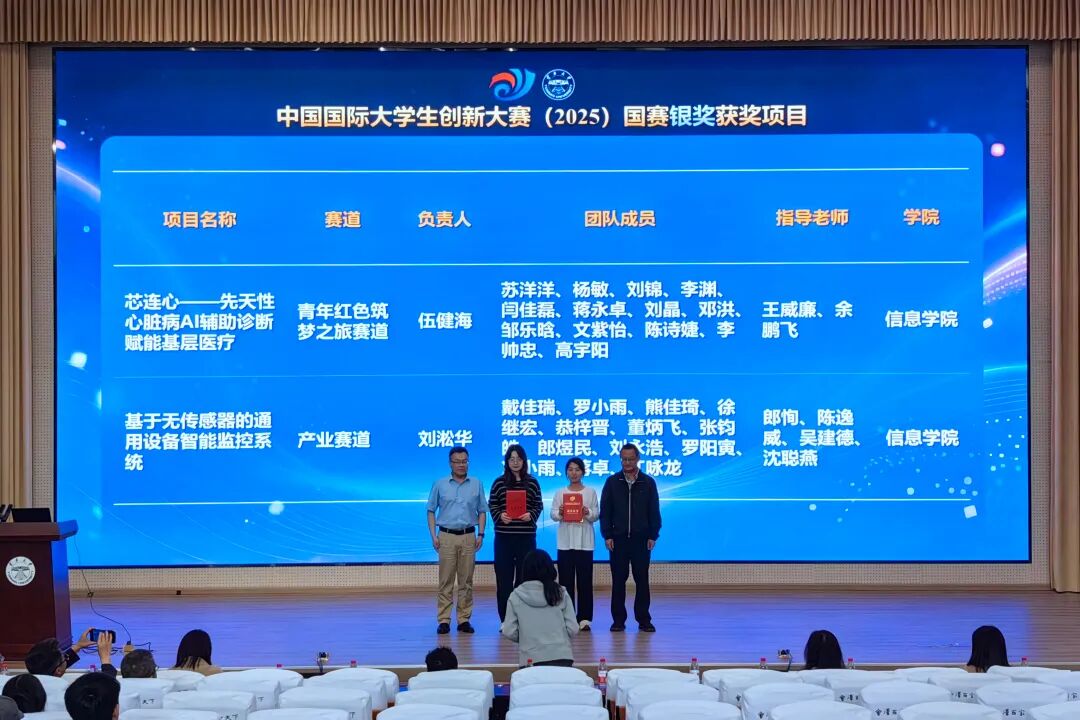 会上,信息学院院长岳昆介绍了学院相关创新举措。中国国际大学生创新大赛(2025)云南大学获国赛金奖的项目团队代表苏洋洋、戴佳瑞同学分别进行了项目路演与参赛经验分享。化学科学与工程学院教授袁申富分享了项目指导经验,数学与统计学院副院长周建军结合全国大学生市场调查与分析大赛,交流了学科竞赛组织与指导的心得体会。