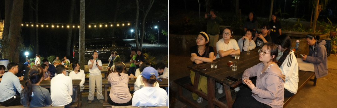 实习活动以泰国农业大学林业学院的系列专题讲座拉开帷幕。讲座聚焦泰国生态环境与生物多样性现状、火灾对森林结构及碳循环的影响,以及泰国国家公园管理、生态旅游与生物多样性保护的实践经验。为增进学术互动,中泰学生混合编组,围绕预设的生态学课题展开初步研讨,为后续野外工作奠定了坚实的理论与协作基础。