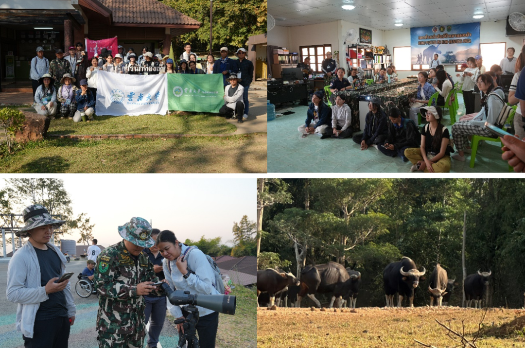 为深化对生物多样性保护实践的认知,师生们走出研究样地,实地探访考潘玛非狩猎区、考艾国家公园等多个泰国自然保护区:通过望远镜观察到珍稀的白肢野牛,在夜间巡护中近距离邂逅亚洲象,还观察到豪猪、野生鹿群等野生动物。这些珍贵的野外观察经历,将“生物多样性保护”的理念从课堂理论转化为触动心灵的实践体验。