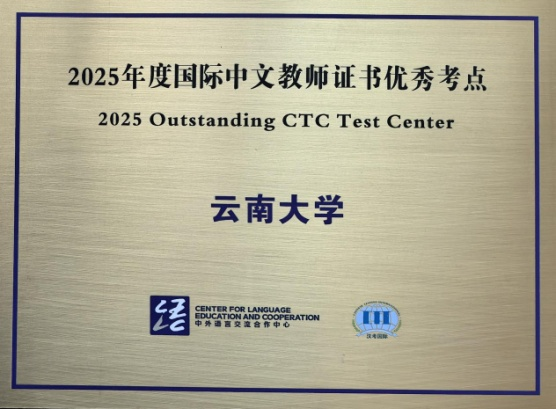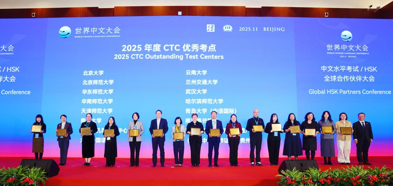 2025年11月14日—16日,世界中文大会在北京国家会议中心举行。大会期间举行了2025年度国际中文教师证书(CTC)优秀考点颁奖典礼,云南大学凭借在国际中文教师证书考试服务工作中的优秀表现,荣获由教育部中外语言交流合作中心和汉考国际颁发的“2025年度国际中文教师证书优秀考点”称号。