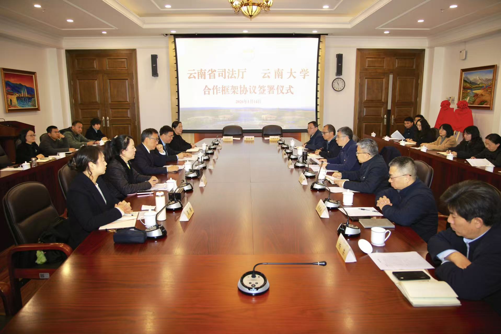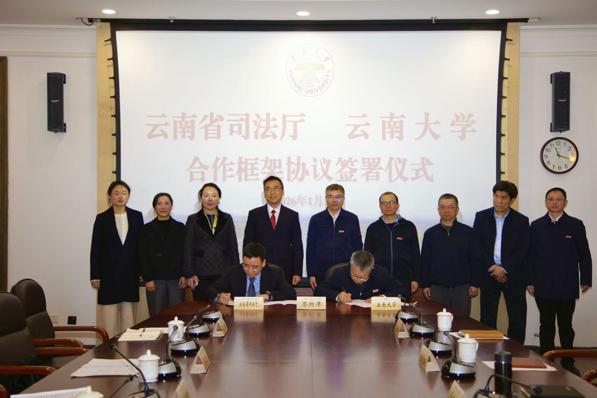 2026年1月14日,云南省司法厅与云南大学在云南大学呈贡校区签署合作框架协议。云南省司法厅党委书记、厅长刘宗根,副厅长胡江天,云南大学校长马文会、副校长杨绍军,以及双方职能部门和云南大学法学院负责人参加仪式,杨绍军主持仪式。