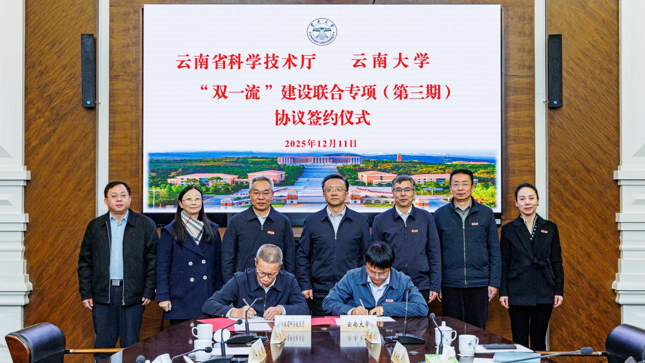 尚朝秋、段兴武分别代表双方签订《云南省科学技术厅 云南大学“双一流”建设联合专项协议书》(第三期)。根据协议,双方将继续聚焦国家战略,锚定省委“3815”战略发展目标,引领新质生产力发展,省科学技术厅支持云南大学实施有组织科研,围绕云南特色优势领域及学校“双一流”学科建设开展前沿基础研究,共同打造西部地区国家战略科技力量重要支点,驱动云南省高质量跨越式发展。