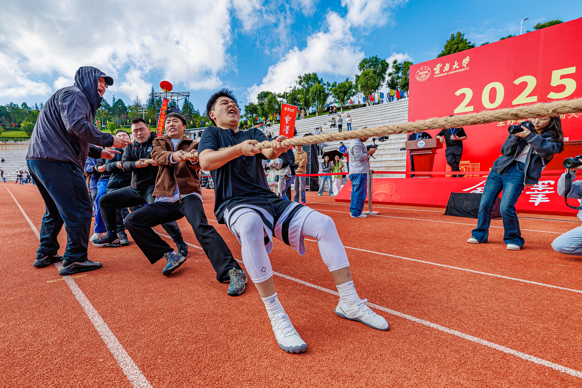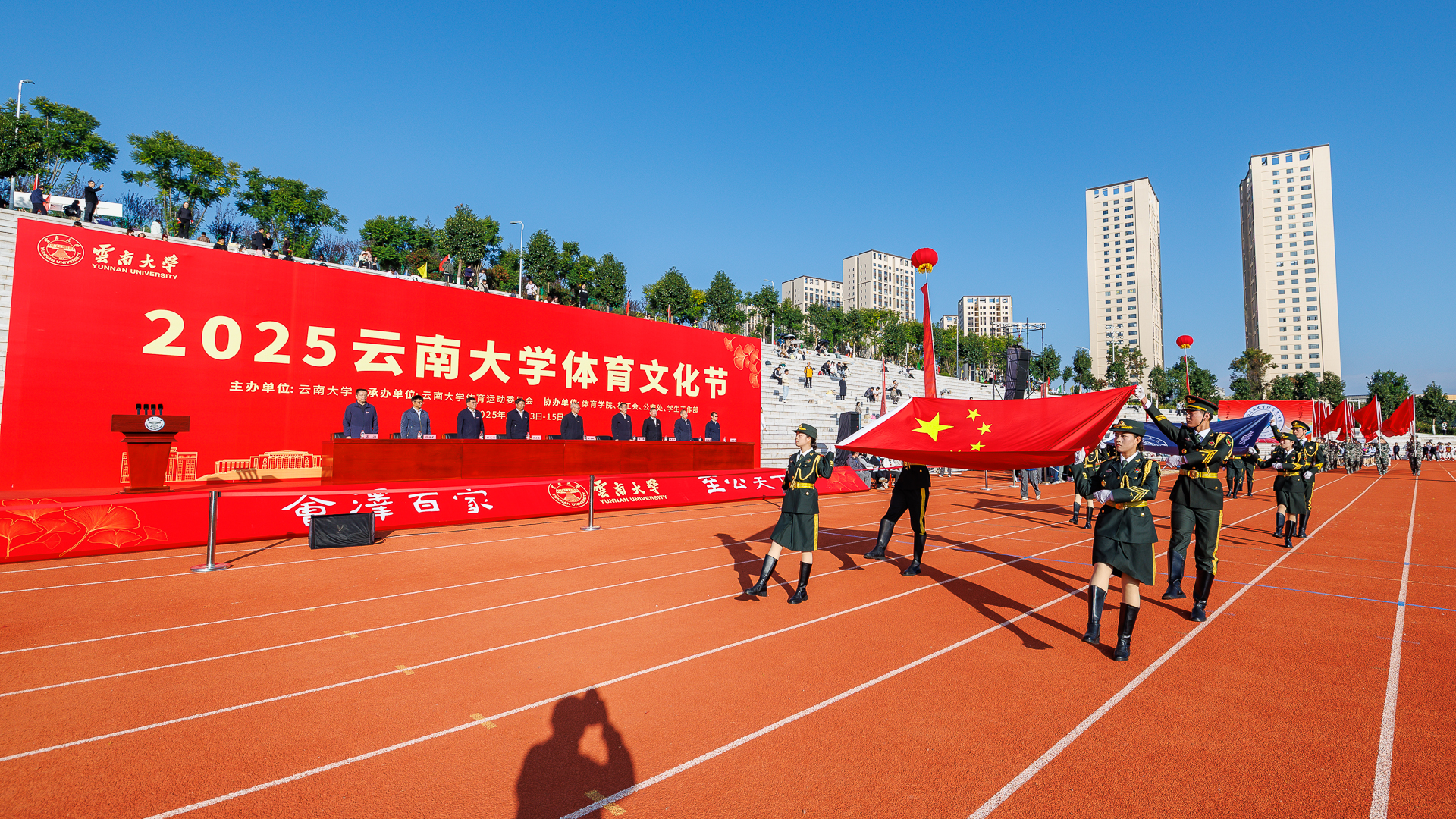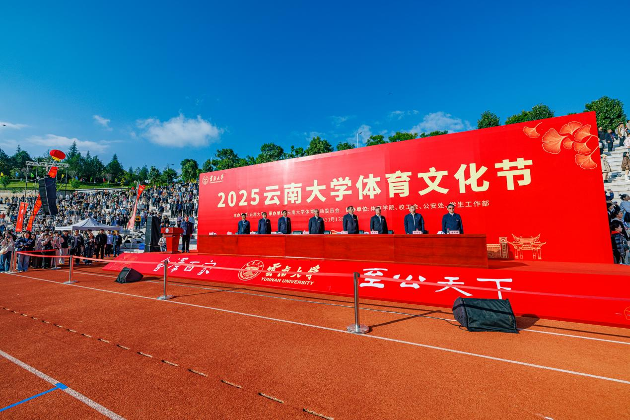 2025年11月13日,2025年云南大学体育文化节在呈贡校区呈东体育场开幕。校领导周学斌、张玮、吴建德、王爱平、陈克清、吴涧、廖炼忠、段兴武、唐年胜,各院、各部门、各单位师生代表参加了体育文化节开幕式。