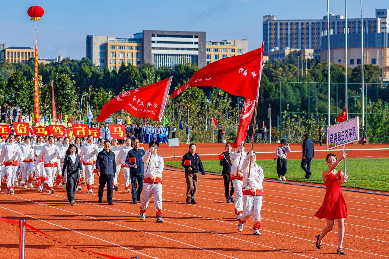 开幕式上,国旗方阵、校旗方阵、会徽方阵、鲜花队方阵、红旗队方阵、各学院、各部门代表队方阵依次进场。方阵中各具特色的字牌和道具,充分展示了各学院、各部门的独特风采与鲜明特色,更展现了云南大学师生们饱满的精气神和顽强拼搏的体育精神。每一个方阵的亮相,都赢得了热烈的掌声和喝彩声。