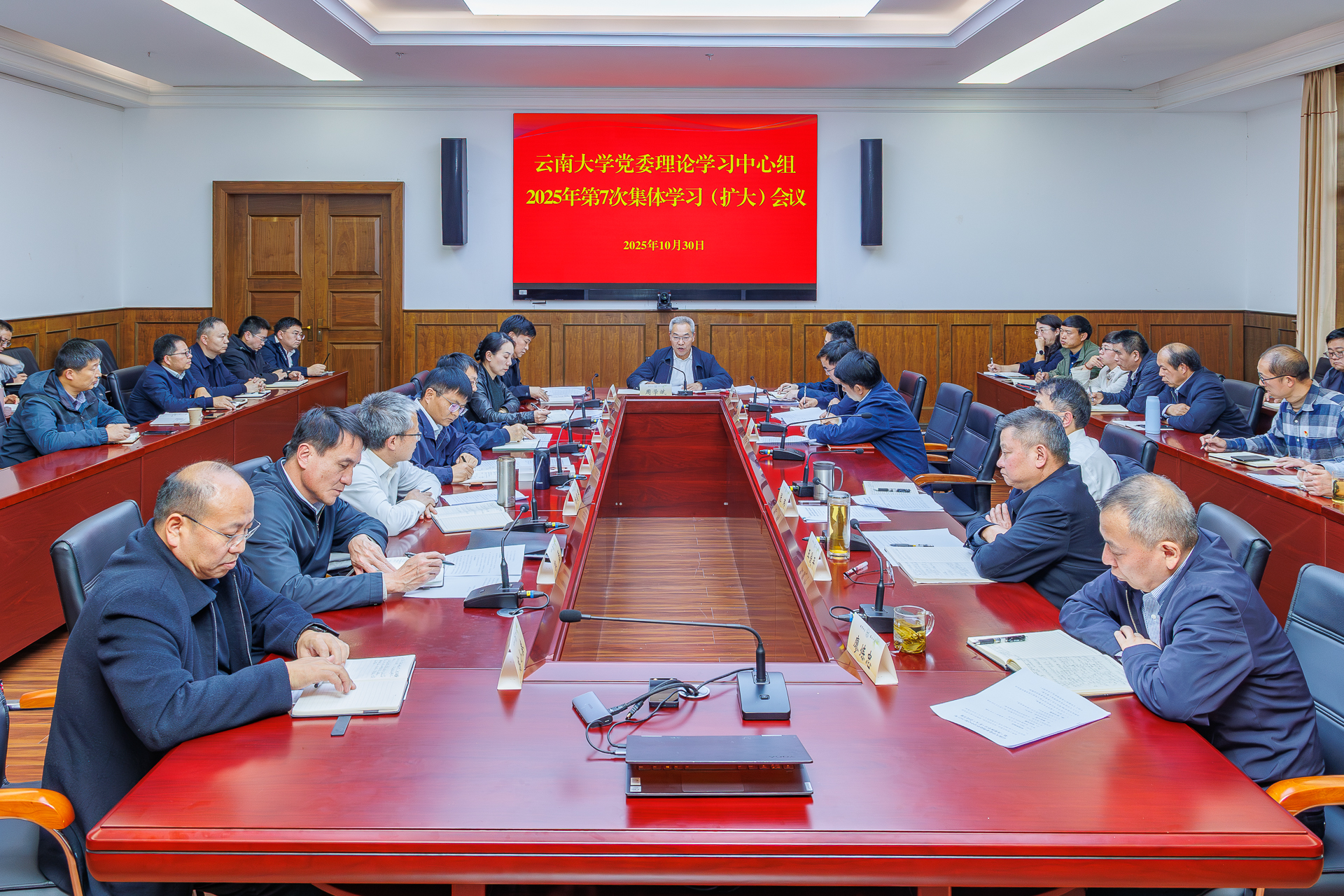 2025年10月30日,云南大学党委理论学习中心组举行2025年第7次集体学习(扩大)会议,学习贯彻党的二十届四中全会精神,深入学习《习近平谈治国理政》第五卷,全面推进学校高质量发展。校党委书记周学斌主持会议并作总结讲话。
