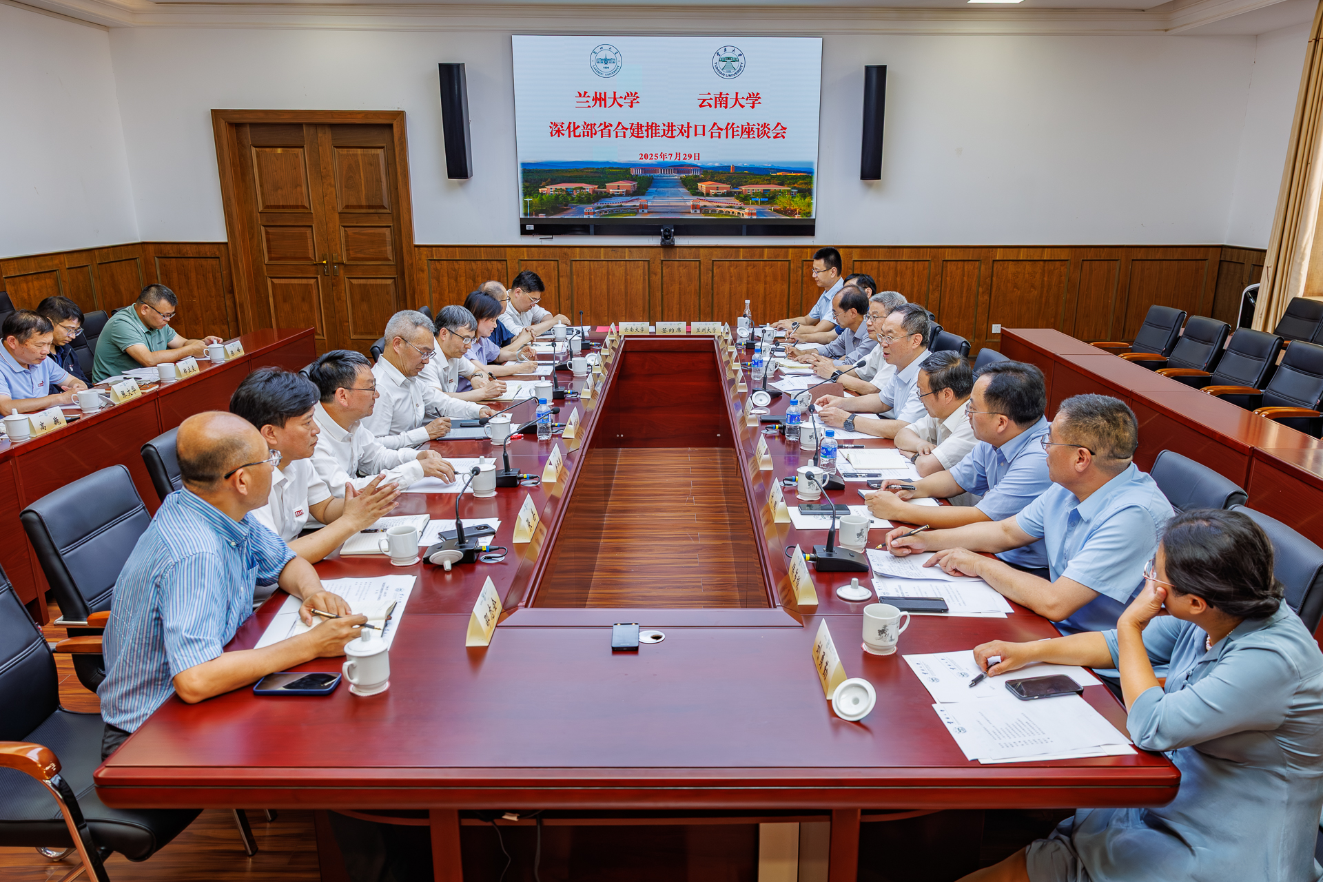 2025年7月29日,兰州大学、云南大学深化部省合建推进对口合作座谈会在云南大学召开。兰州大学校长、中国工程院院士杨勇平,副校长陈熙萌,云南大学党委书记周学斌、校长马文会、副校长唐年胜,以及云南省教育厅、兰州大学、云南大学相关职能部门负责人参加会议。周学斌主持会议。