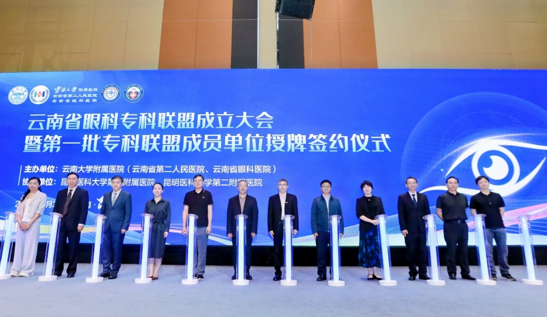 2025年6月28日,由云南大学附属医院主办,昆明医科大学第一附属医院、昆明医科大学第二附属医院协办的云南省眼科专科联盟成立大会暨第一批成员单位授牌仪式在昆明举行。省卫生健康委党组书记、主任姜旭,云南大学校长马文会、副校长段兴武,省卫健委相关处室、云南大学附属医院领导班子、联盟成员医院代表等参加仪式。云南大学附属医院院长彭云珠主持仪式。