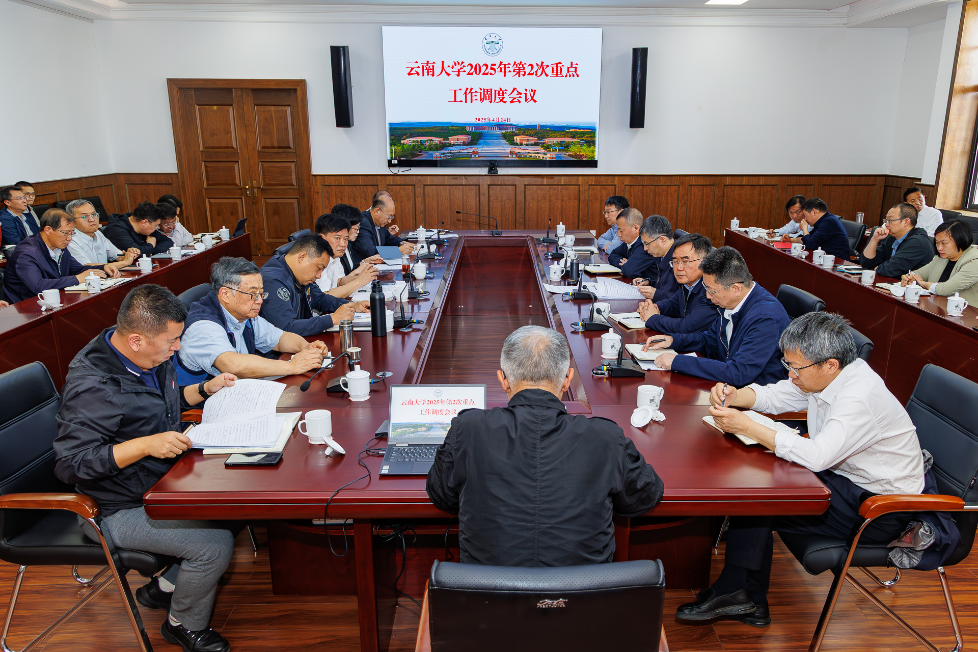 2025年4月24日,云南大学召开2025年第2次重点工作调度会议。校长马文会,副校长陈克清、廖炼忠、吴涧、唐年胜、杨绍军,以及相关职能部门、教学科研单位、直属单位有关负责同志参加会议。