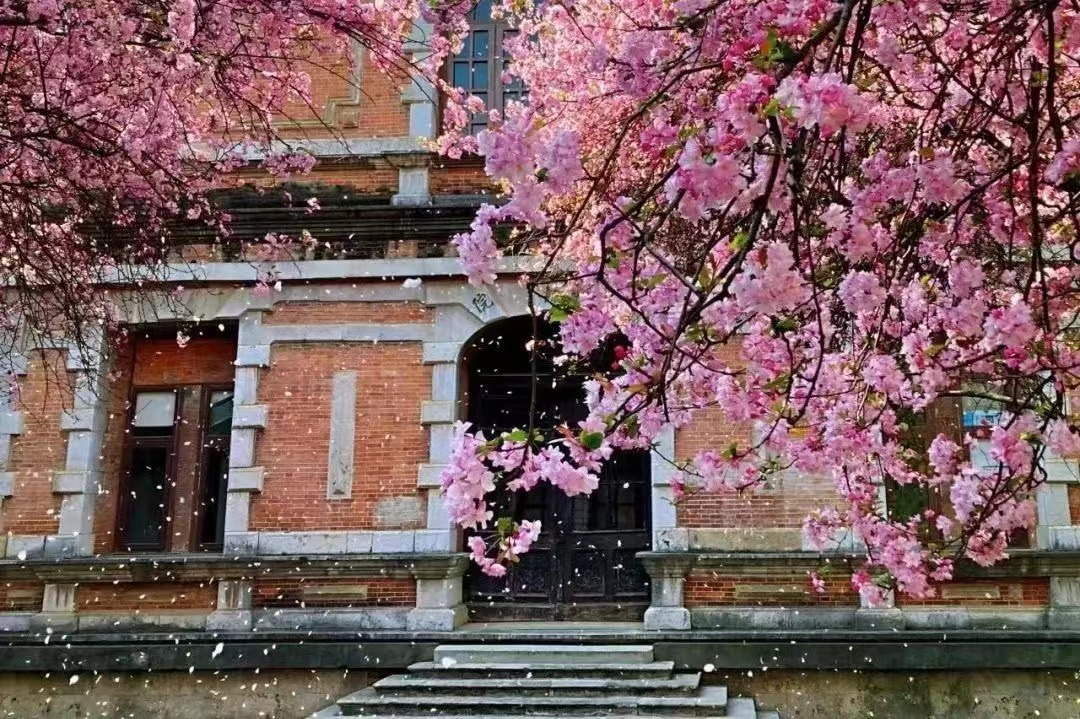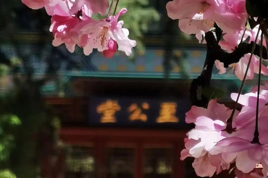 澄澈的天空映衬着校园里绚烂绽放的繁华,