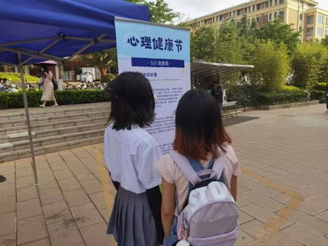 2023年5月25日上午十二点,心理协会在梓苑食堂门口开展宣传心理健康知识摆点活动,通过心理健康知识竞答、趣味活动以生动有趣的方式将心理健康知识传达出来,让同学们进一步了解、掌握必备的心理健康知识,引导同学们关注心理发展、悦纳自我、关爱自我,提高心理健康水平,构建和谐校园。