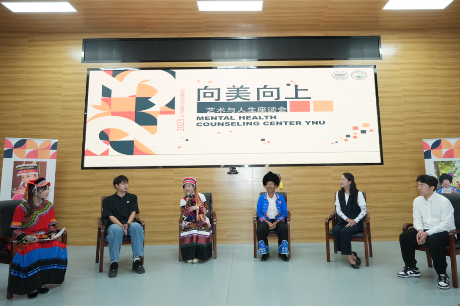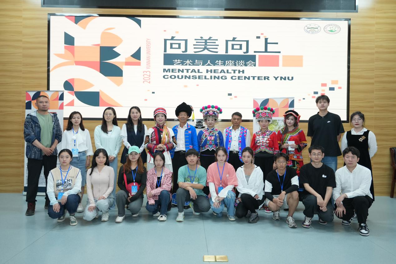 2023年5月20日上午十一点在呈贡校区学生会堂218开展了“向美向上”艺术与人生座谈会,以“为提升美育、文化教育在心理健康教育中的作用”为主旨,引导大学生发现生活中的美与乐趣,培养积极健康的心理品质。本次座谈会邀请了金梅老师、普清荣老师分享自己的艺术生涯,由学生工作部副部长、心理健康咨询服务中心主任滕燕老师分享民族艺术与心理健康的关系,还有两位学生代表分享了对艺术与生活的感悟,在座的同学也踊跃向嘉宾提问、交流。现场气氛热烈,同学们收获颇丰。