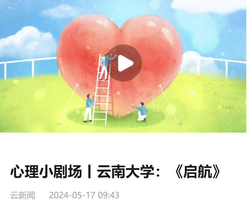 2024年5月17日,云南大学心理情景剧《启航》在“云南省心理健康小剧场”展播。