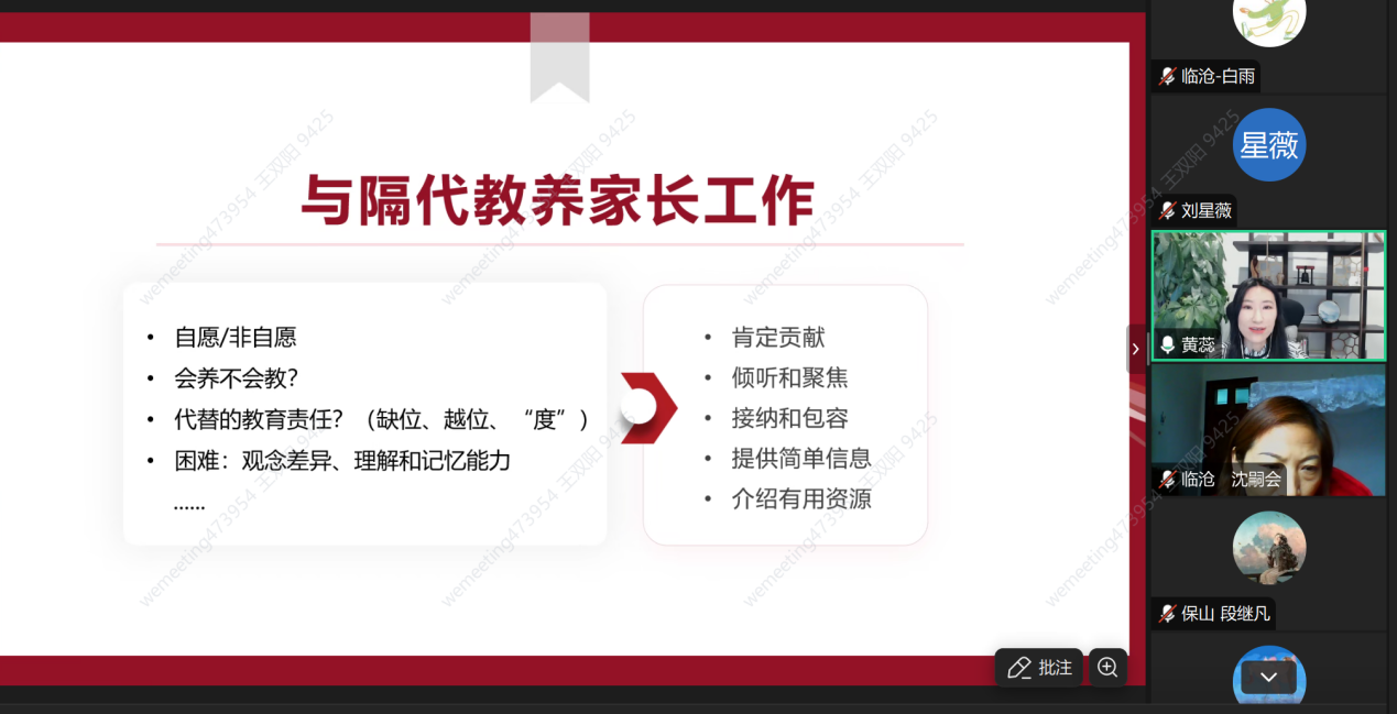 未来,我们还将通过《中小学生家长会商案例集》撰写思路培训,帮助骨干教师深刻掌握家长会商记录的撰写规范、框架、思路与方法以及家长会商相关研究的发表与伦理的方法,为骨干教师工作成果从专业化到学术化的创造性转化提供科研依据。