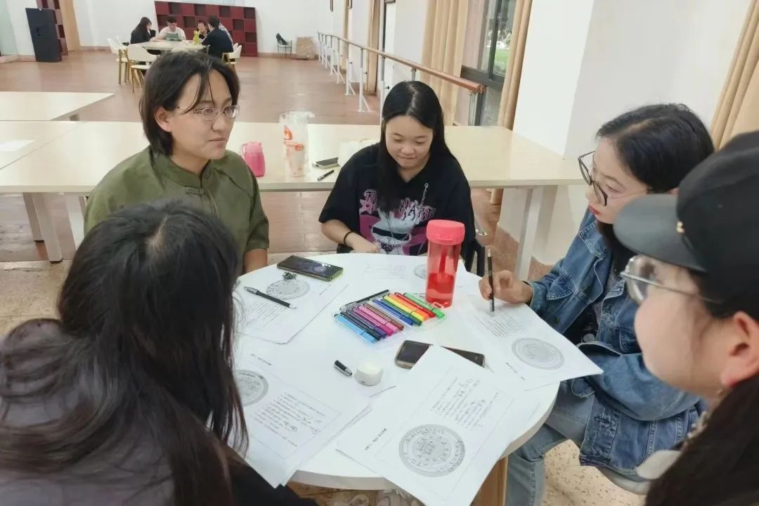 首轮,同学们通过绘画进行自我介绍。与平时进行口头的自我介绍不同,此次活动要求同学们用画笔表达自己的内心世界。在8-10分钟的思考时间过后,同学们纷纷在小组内分享了自己的作品,通过绘画这一独特的交流方式,增进了彼此的了解。